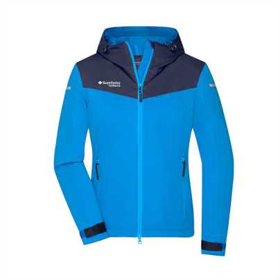 Color: bright blue/navy lightweight, lined outdoor softshelljacket. 100% recycled Polyester, wind and waterproof, breathable Oeko-Tex Standard 100 including logo embroidery on the right chest.